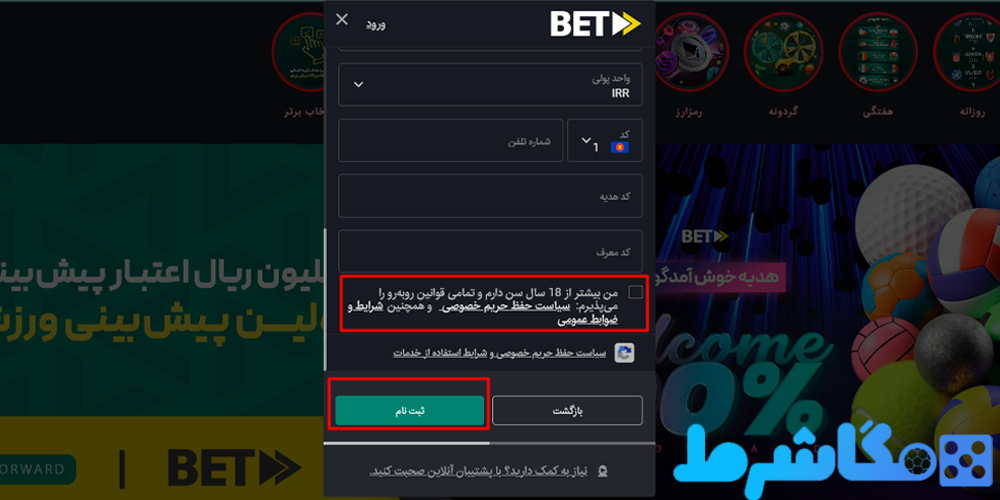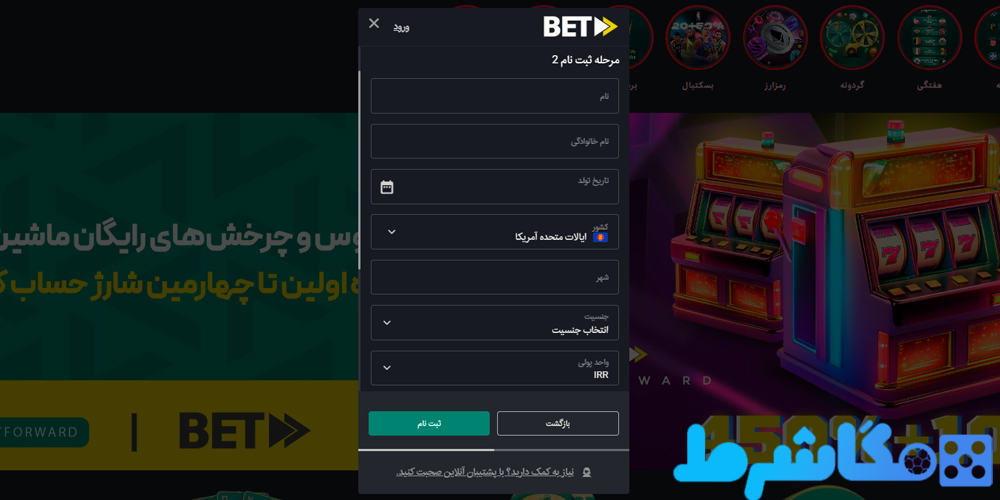 📝 مرحله دوم: پر کردن فرم اولیه بت فوروارد