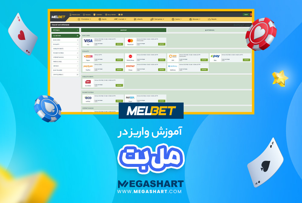 این پست درباره آموزش واریز در مل بت MelBet است. برای شروع شرط بندی در سایت عالی و جذاب مل بت ابتدا باید مثل سایت شرط بندی جت بت حساب خود را شارژ کنید در ادامه برای شما کاربران عزیز شارژ حساب در مل بت را آموزش می دهیم که به راحتی در مل بت شرط بندی کرده و لذت ببرید. با ادامه این پست با سایت مگاشرط همراه باشید.