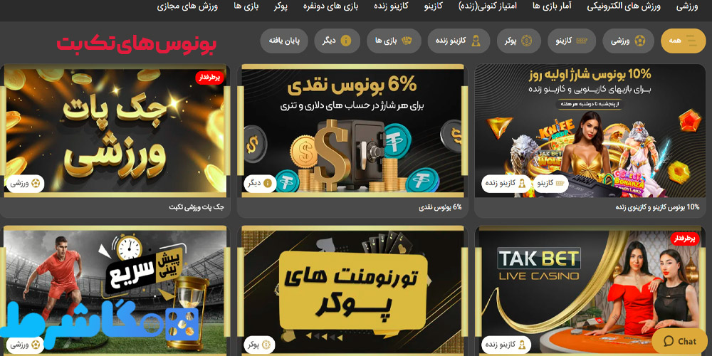 این پست درباره تک بت ، takbet ، ثبت نام در سایت تک بت ، تک بت ورود ، سایت شرط بندی تک بت است. سایت تک بت یکی از بزرگترین و معتبرترین سایت شرط بندی موجود در عرصه ی پیش بینی همراه با نوآوری و در زمینه های شارژ و برداشت، پیشتاز است.